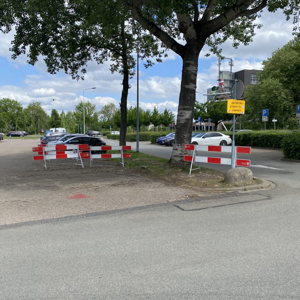 Sinds de aanvang van de reconstructie van het voet- en fietspad rijden voertuigen zich dagelijks vast op de paaltjes tussen de Atletenbaan en de Estafette in Maastricht, omdat een L08 verkeersbord (doodlopende weg) ontbreekt.