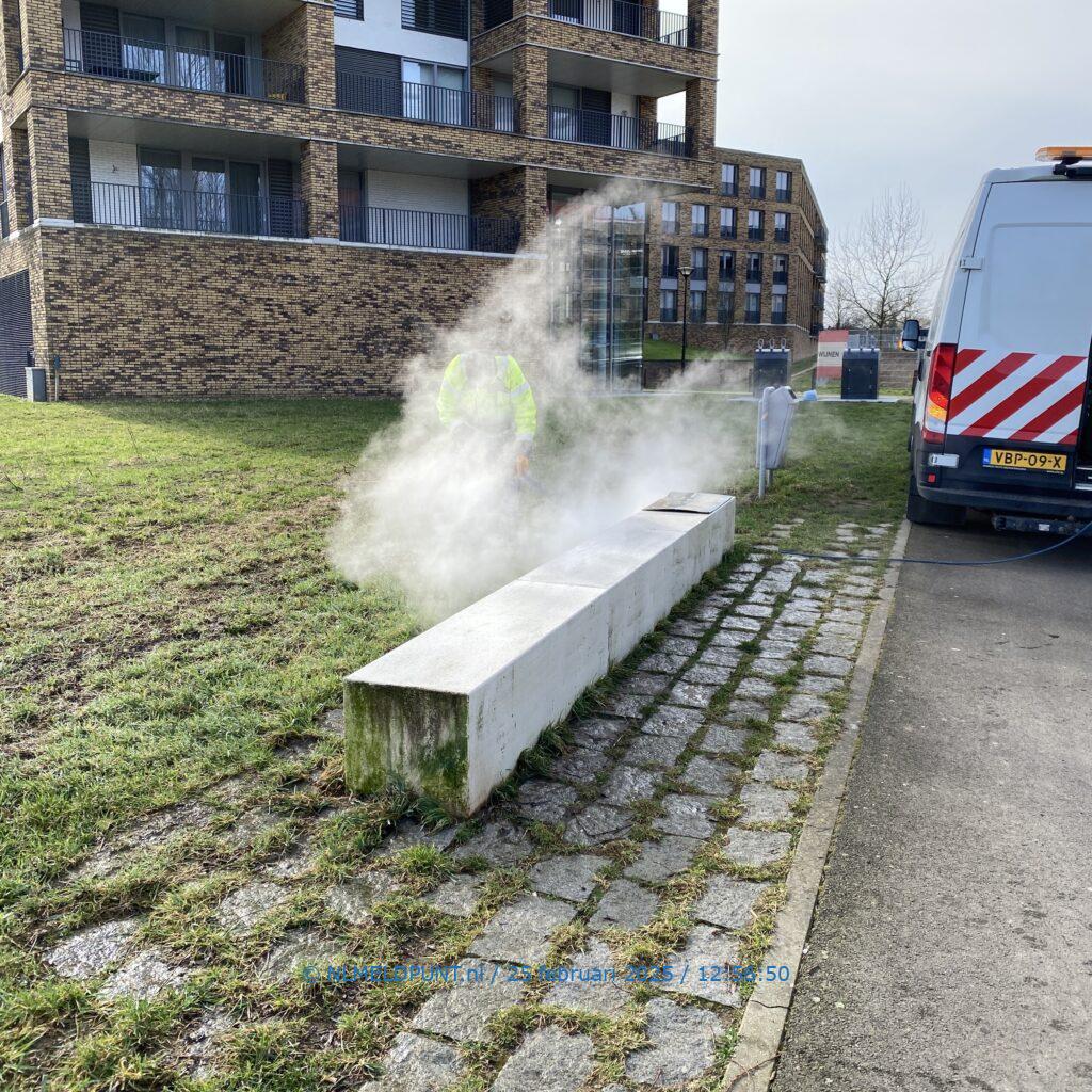 Betonnen bank aan de Marathonweg eveneens reinigen en met “betonverf” wit opschilderen. Afgelopen jaar heeft u dit gedaan met een verf die afgaf. Hierdoor hebben we kleding moeten weggooien.