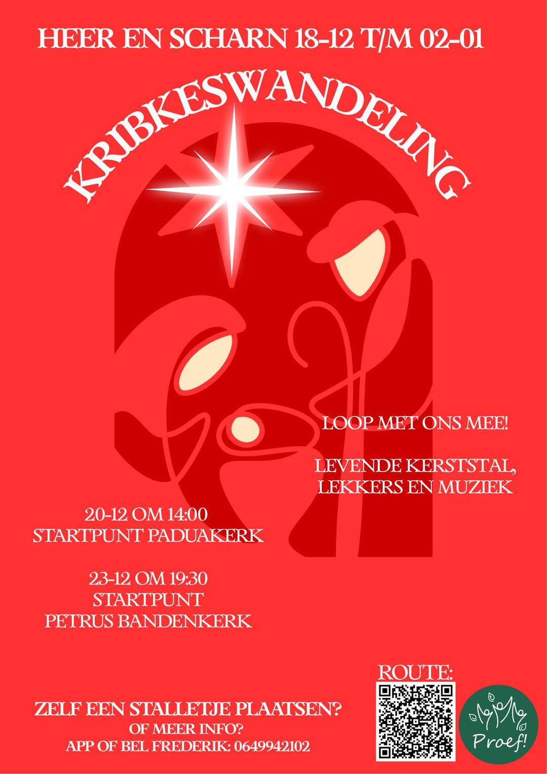We zijn op dit moment weer druk bezig om voor het derde jaar een kribkesroute op te zetten door Scharn en Heer van 18 december tot 2 januari. Daarvoor zou het super leuk zijn als er veel huizen mee willen doen door een kribke voor het raam of in de tuin of op een andere manier te plaatsen.